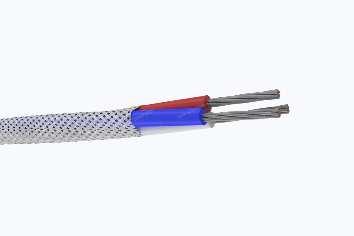 1. Две многопроволочные медные лужёные токопроводящие жилы с площадью номинального поперечного сечения 0,12 мм2, соответствующие 4 классу по ГОСТ 22483-2012.